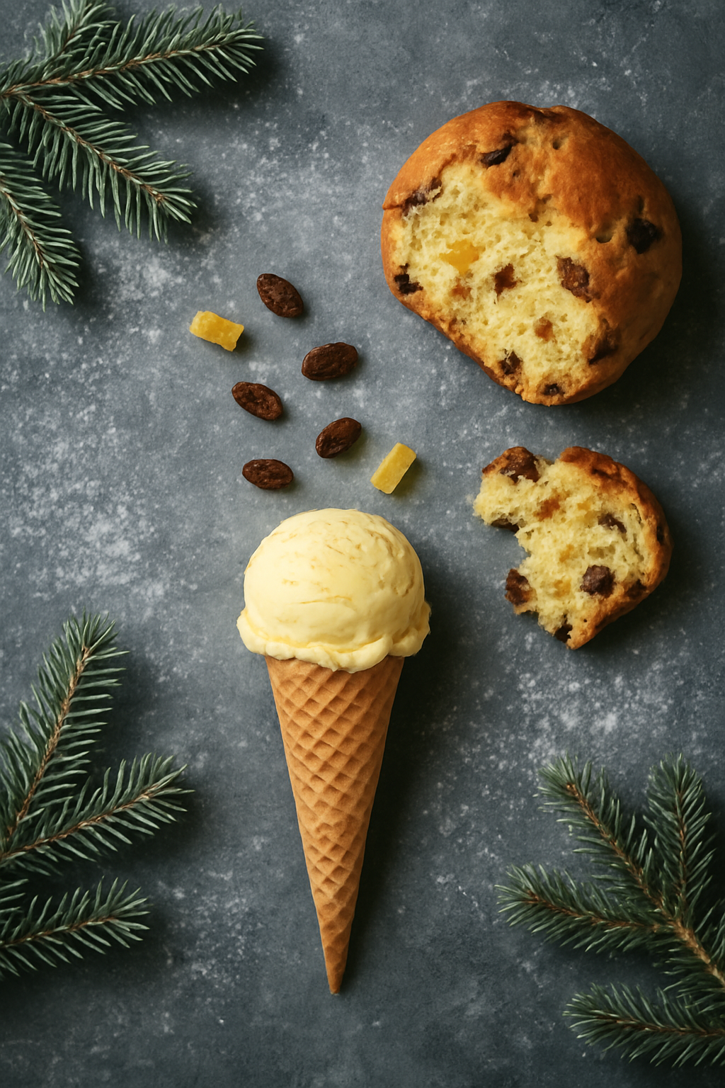Diese Limited Edition basiert auf dem traditionellen italienischen Weihnachtsgebäck Panettone — wir kombinieren saftige Rosinen, aromatische Zitrusschalen und eine zart-cremige Eisgrundlage. Das Ergebnis? Ein wohlig-winterlicher Geschmack, der dich direkt in die Atmosphäre der italienischen Weihnachten versetzt.
